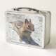 Pour les amateurs de nature et de faune ! Garder votre nourriture dans cette boîte à lunch en métal rendra difficile pour la faune de voler votre déjeuner! Lunchbox présente l'image d'un petit écureuil terrestre mignon. Sélectionnez la couleur de votre boîte à lunch.