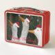 Adultes et enfants vont adorer ce style rétro, boîte à lunch métallique pour les vacances qui présente une image fantasque de canards blancs drôles en casquette Père Noël rouge. Si vous le souhaitez, vous pouvez modifier la couleur de votre boîte à lunch. Un design amusant pour les vacances !