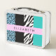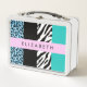 Lunch Box Empreinte de léopard, Zebra Print, Bleu, Votre nom