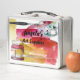 Conservez votre peinture ou d'autres fournitures d'art dans cette boîte à lunch / boîte à provisions d'art. L'avant et l'arrière représentent la peinture à l'aquarelle et les outils. Le devant a votre texte.