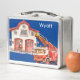 Cette boîte à lunch cool avec une cheminée et un camion de moteur peuvent être personnalisés avec le nom de votre petit pompier aussi n'oublions pas le chien de la cheminée