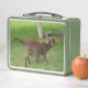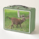 Cette jeune chèvre brune contraste joliment avec l'herbe de pâturage vert vif de ce ravissant Nevada Ranch.  Conception par Diane Blackman.