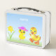 Cute poussette et canard sur le bleu clair Boîte à lunch en métal.