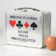 N'importe quel passionné de bridge appréciera cette boîte à lunch métallique contenant les quatre costumes de cartes ainsi que le pont suivant : "Les Joueurs De Pont Connaissent Leurs Probabilités". Pont de truisme mémorable disant boite de repas en métal pour tout professeur de pont ou directeur de pont!