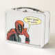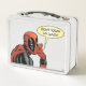 Découvrez cet art de caractère de closeup de Deadpool chuchotant un commentaire.