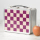 A beige and maroon checkerboard pattern with alternating squares. Symmetrical and evenly spaced, it creates a classic, orderly visual effect.