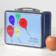 Ballons colorés contre arrière - plan bleu ciel clair sur le devant avec messages en rouge orange jaune bleu vert. Personnalisez avec Nom Déjeuner (ou supprimez le champ Nom). Certains enfants aiment utiliser des boîtes à lunch pour transporter leurs petits jouets et leurs lettres magnétiques, etc, si amusant d'en avoir aussi pour ça. Salut, Smile, Amis, Jouer, Amour est écrit à l'intérieur des ballons. Si vous choisissez de personnaliser des mots, vous devrez peut-être modifier et augmenter/diminuer la taille des polices pour les adapter à la zone. Backside a le libellé, Avoir du plaisir avec des ballons plus gros qui s'envolent dans le ciel. Conception originale © TamiraZDesigns.