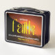 Stylish Inspirational Christian Quote FAITH Bible Verse Metal Lunch Box, with CUSTOMIZABLE MONOGRAM (on the back). The inspirational quote is based on Hebrews 11:6—Without Faith it is impossible to please God. The design shows a beautiful sunset view with white and yellow typography. Add your initials or name at the bottom right hand corner on the back (or delete). This Christian Metal Lunch Box would make an excellent faith-based gift for Mother's Day, Teacher's Appreciation, Pastor Appreciation, Birthdays, or 'Just Because' day. Matching gifts available.
