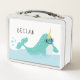 Faites cool de jour de votre enfant avec ce design arctique! L'illustration présente un narval bleu qui éclate dans l'eau. Cette jolie baleine a une défensive jaune, sourit joyeux et porte des lunettes bleues.