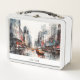 Belle lunchbox blanche avec New York City, Manhattan. Beau centre-ville peint avec des taxis jaunes.