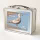 Lunch Box avec une scène paisible avec une jeune mouette sur la plage. Vous pouvez ajouter votre propre devis ou d'autres textes.
