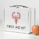 Assurez-vous que votre famille, vos amis et vos invités sont couverts pour toute urgence médicale qui pourrait survenir avec cette trousse pratique remplie de tous les produits de première nécessité de pharmacie qui a un grand caducée rouge sous lequel apparaissent les mots "trousse de premiers soins". Le dos contient une liste des contenus qui peuvent être personnalisés en fonction de vos contenus.