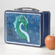 Portrait de profil de dragon bleu, vert et turquoise avec neige tombant tout autour. Rose tribal noir.