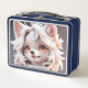 Adorable chiot rose et blanc moelleux avec des fleurs dans sa fourrure.