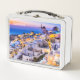 Belle boîte à lunch avec Oia, Santorin, Grèce. Coucher de soleil dans la plus belle situation de Grèce.