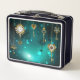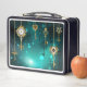 Or, clés antiques avec engrenages et cadrans accrochés sur chaînes dorées sur arrière - plan vert lumineux.