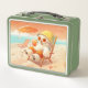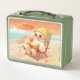 Smile Dog est en mode vacances complet, se relaxant en short orange, sirotant un verre sur la plage et prenant le soleil. Parfait pour les ambiances estivales et les espaces de détente.