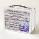 Bella lonchera de comida con maladie ño de flor pura y textos bíblicos de Filiépines 4:13 "Todo lo puedo en Cristo que me fortalece", Filipines 4:19 "Dios suplira todo lo que hos falta...", y otros versos bíblicos. Otro verso escrito en esta Lonchera es "Soy Tierra Fértil Para Buena Semilla y Jesucristo me da la Victoria."