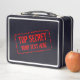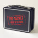 Top Secret boîte à lunch en métal mignon pour les enfants. Ajoutez votre propre texte personnalisé. Pratique pour l'école, porte-bague mariage, costume d'Halloween et plus. Conception amusante pour un garçon ou une fille qui est un agent secret, un agent de sécurité ou un espion. Noir et autres couleurs.