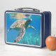 Photo sous-marine d'une tortue de mer nageant dans une eau cristalline juste en dessous de la surface.