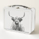Boite à déjeuner de vache haute-terre noire et blanche. Portrait animal de ferme.