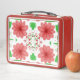 Lunch Box in classic old school Red Color finish printed with Whimsical Red Flowers Green Leaves On White Art fun digital graphic Illustration design with soft translucent and solid colors by TheFabricSeal print on demand shop at Zazzle.com #ZazzleMade ©️Original. https://www.zazzle.com/store/thefabricseal