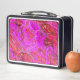 Cette boîte à lunch très vivante comporte des tourbillons de rose chaud, magenta, noir, crème et or. Cette boîte à déjeuner unique est une façon colorée et amusante de porter autour de votre déjeuner ou beaucoup d'autres choses. Il fait aussi un beau cadeau. La garniture est en noir mais vous pouvez choisir d'autres couleurs.