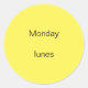 Ces autocollants du jour de la semaine comportent le mot lundi ainsi que la traduction de l'anglais à l'espagnol, lunes. La couleur de l'arrière - plan est jaune, qui peut être customisé. Merci pour faire du shopping CherylsArt sur Zazzle.