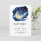 Célébrez votre petite étoile avec cette invitation rêvée au baby shower. Présentant un design moderne et fantaisiste, cette invitation présente un nuage bleu marine d'aquarelle accentué par une lune jaune or et des étoiles scintillantes. Parfait pour une célébration simple et douce, ce design saisit la magie de l'accueil d'un bébé garçon.