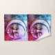 Il s'agit d'une représentation artistique du soleil avec un visage à côté de la lune avec des roses chaudes et des bleus verts dans un ombrage abstrait.Le visage a l'air paisible et pensif. Lune lunaire et décor soleil pour transformer magiquement votre décor de salle de bain.