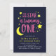 Famille Invitation et amis à une fête de premier anniversaire avec cette Lune rose jaune et étoiles 1er anniversaire Invitation de fête avec la lune jaune et les étoiles et les mots "notre petite étoile tourne un" en rose tout contre un arrière - plan bleu foncé. L'invitation a des étoiles jaunes motif contre un arrière - plan bleu foncé à l'arrière. Consultez d'autres éléments d'anniversaire ici https://www.zazzle.com/rosewoodandcitrus/gifts?cg=196514072126829696&rf=238364477188679314 Personnalisez-le en remplaçant le texte de l'espace réservé. Pour plus d'options comme changer la police et sa taille/couleur ou l'espacement entre les lettres cliquez sur le bouton "Personnaliser". *Veuillez noter que le filigrane Zazzle qui apparaît dans l'aperçu du zoom n'apparaîtra PAS sur le produit imprimé final. © Bois de rose et agrumes