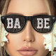 Lunettes de soleil rétros noires cool avec le texte "BABE". De magnifiques lunettes d'été ou de fête pour les femmes et les filles.