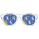 Party Shades avec design avec drapeau du comté historique de Merioneth, au Pays de Galles, Grande-Bretagne; drapeau bleu azur avec trois chèvres blanches et soleil jaune