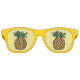 Des ananas cool décorent ces lunettes de soleil jaunes pour les amateurs de fruits à porter dans des endroits tropicaux comme une plage à Hawaï. Jaunes et verts sont de grandes couleurs estivales.