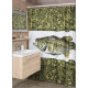 A shower curtain for the person who loves to fish for trophy largemouth bass. The background is a green camouflage pattern.