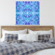 Print on canvas featuring whimsical arabesque pattern, stylized lupine flowers and leaves, bohemian / ethnic / hippie / vintage style. This design was elaborated from hand drawn acrylic painting. Colour palette: blue, azure, teal, ultramarine, cobalt, lavender.