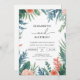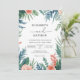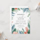 A vibrant border of lush botanicals in shades of emerald and coral creates a romantic atmosphere. Delicate watercolor leaves and subtle floral accents offer an elegant touch for your special day. Evokes a feeling of natural beauty and serene sophistication.