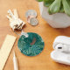 A vibrant and dense tropical seamless pattern that immerses the viewer in a lush jungle environment. The design features an intricate overlay of large Monstera leaves and various palm fronds, creating depth and texture. The dominant palette is a dramatic combination of deep emerald and teal blues/greens set against a dark, moody background, which makes the pops of bright coral/orange from smaller fronds truly stand out. This pattern is perfect for adding an exotic, high-end feel to apparel, home textiles, or digital backgrounds. Its rich colors and fluid lines make it ideal for products seeking a sophisticated yet lively tropical aesthetic.