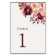 Lush Fall Floral Wedding Table Number