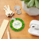 A keychain with a fresh springtime design with a field of lush green clover with dainty little water drops. Personalize with your name and monogram initial in the centre on a white frame with a FAUX gold foil border.
