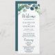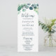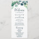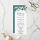 This lush greenery and eucalyptus wedding program is perfect for an elegant backyard wedding. The modern botanical design features gorgeous watercolor blue eucalyptus and green leaves. Include the name of the bride and groom, the wedding date and location, thank you message, order of service, bridal party and an optional "in loving memory" memorial.