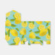 A fresh summery design of lemons on a teal background.