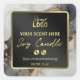Product labels for soy candles with a lush black and gold ink design.
