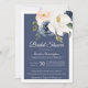 Lush Magnolia Rose Navy Blue & Blush Bridal Shower Invitation