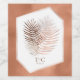 A trendy colour palette in shades of terra cotta, copper and rust; sparkling geometric frames and elegant design layouts, provide the basis for this exciting wedding suite. Whether you're planning a destination wedding or staying close to home, this delicate palm leaf design set makes an eye-catching choice. The striking wine label shown here provides a template to easily add your initials and wedding date. Search ID956 to see other pieces and colour choices for this set.
