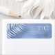 A trendy colour palette in shades from steel grey to windsor blue; sparkling geometric frames and elegant design layouts, provide the basis for this exciting wedding suite. Whether you're planning a destination wedding or staying close to home, this delicate palm leaf design set makes an eye-catching choice. The wedding address label shown here, provides a template to easily add your own initials, names and address. Search ID956 to see other pieces and colour choices for this set.