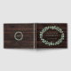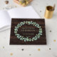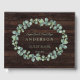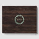 Modern design featuring watercolour eucalyptus branches wreath, on wood barn background; on the back initials and greenery divider round eucalyptus frame. Use Personalize to add your info. For matching items, please, visit my Eucalyptus Greenery Collection.