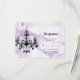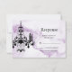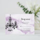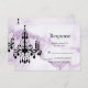 Un lustre en cristal de fantaisie sur un arrière - plan en marbre violet illustré accentue cette RSVP, ce qui en fait un lieu idéal pour une soirée élégante, moderne ou tendance. Il s'agit de la RSVP de coordination pour l'Invitation Bat mitzvah de lustre sur le marbre pourpre.