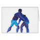 Un tableau de deux hommes luttant. Les deux hommes sont en bleu/violet et portent des shorts bleus.