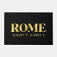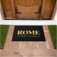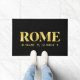 Lux front doormat features Rome, Italy latitude and longitude map coordinates in gold fonts on black background.